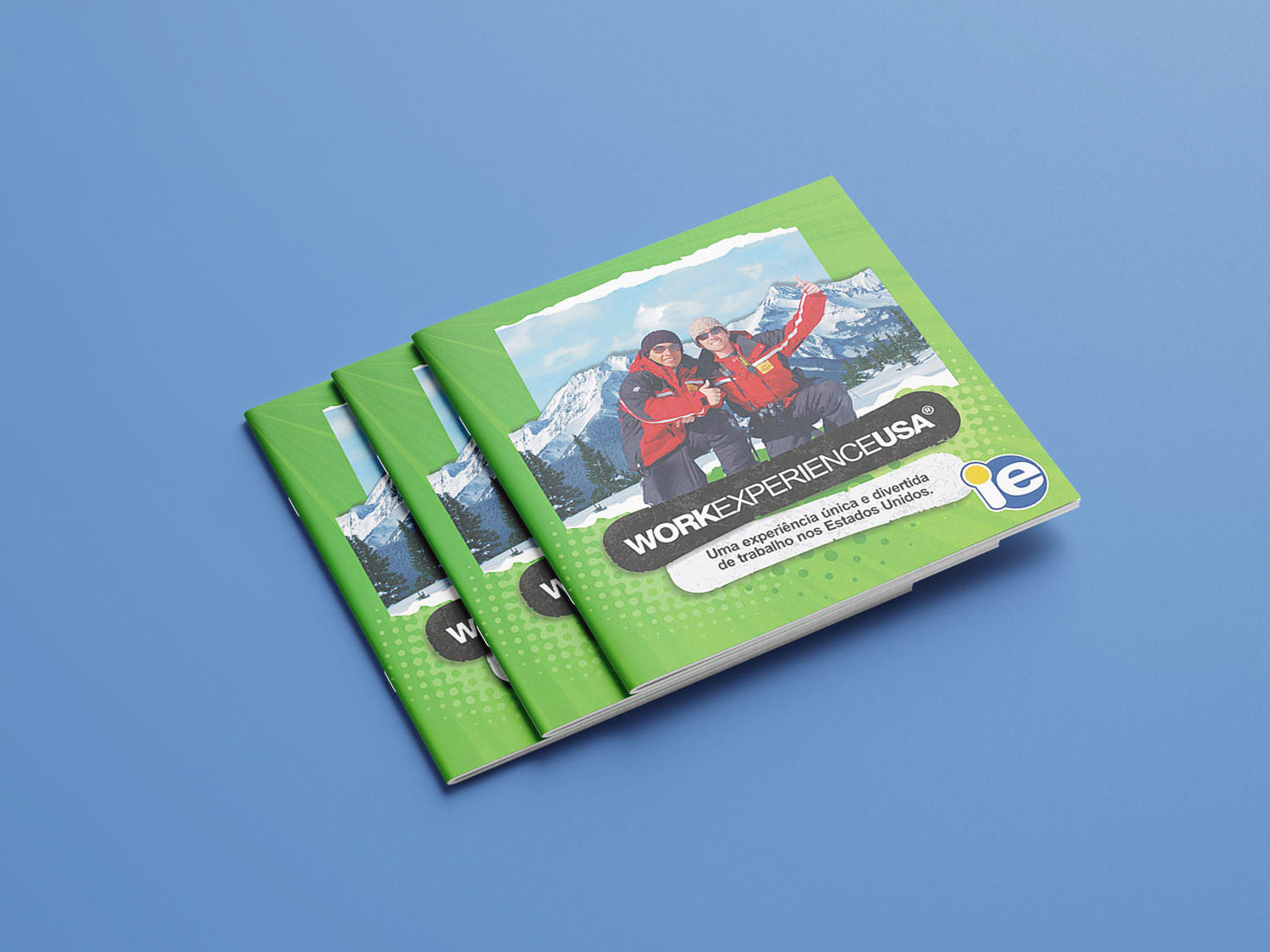 Work Experience USA was the company's main program, where college and university students would travel to anywhere in the USA to work for a few months during the winter break. Its campaign changed every year, as clients would sign up all around the year to board at the end of the year. It's main color was always green, and it required a young and vibrant approach to appeal its target audience.