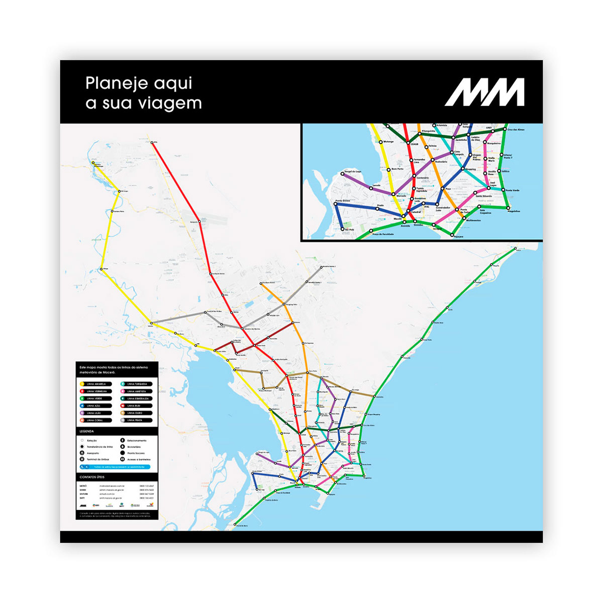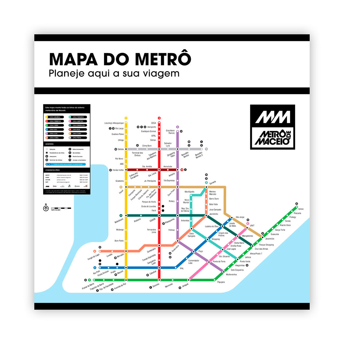 I decided to use the typeface Avant Garde because subways are perceived as a modern and cosmopolitan form of transportation, and a sans-serif geometric font transmits that feeling well. Maceió is also known for its beaches and "jangadas" (fishing sailing rafts), so the leaning uppercase MM shapes in Avant Garde are meant to represent both the boats and the waves of the ocean. All the supporting text uses Franklin Gothic.